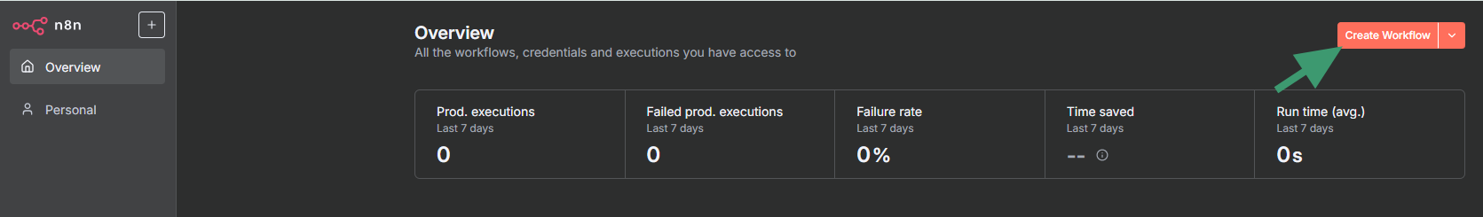 Step 1: In n8n, click "New Workflow"