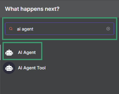 - Search for "AI Agent" and drag it to your canvas