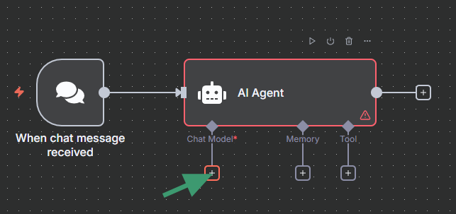 - Connect the Chat Trigger to the AI Agent