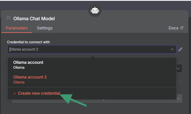 - Click on the Ollama Chat Model node