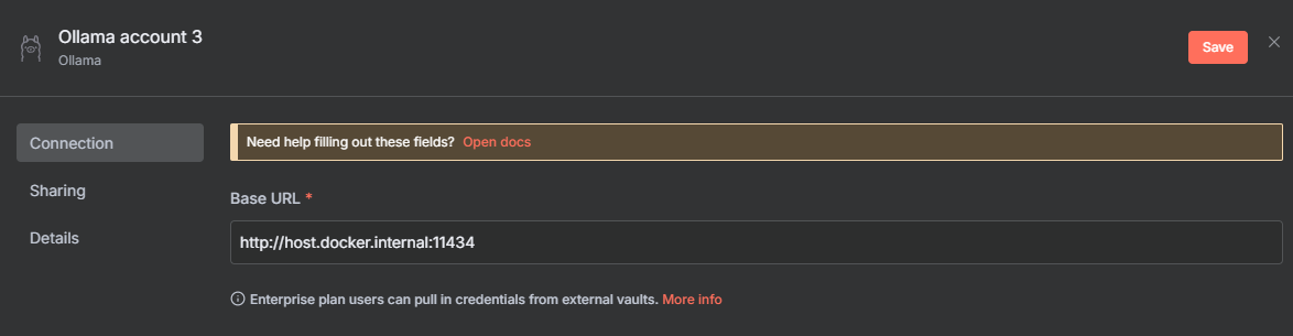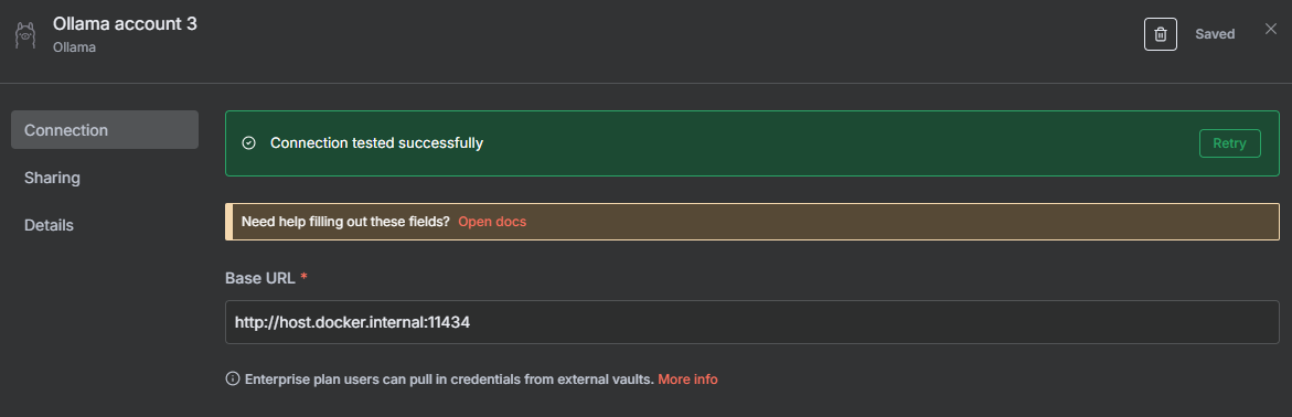 http://host.docker.internal:11434- Click "Save" and then "Test connection"